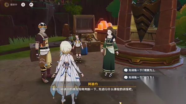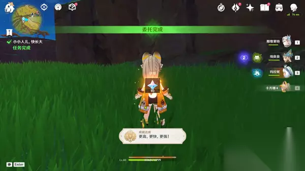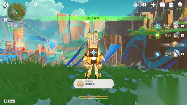 如果不清楚缺哪些,可以在成就栏左上角搜索看看。 「小小人儿,快长大」 这个委托全程无坑,简单写下流程作参考。 小朋友阿蕾梅想成为考古学家,还让旅行者当老师,让我们来训练她吧。 可以训练分支「观察力」(挖掘点位,更快)与「耐久力」(化龙抵达目标点的限时挑战)训练。