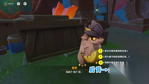 最后向米卢回报委托就完成了。 「洗理嵴锋·修锋」 前置「洗理嵴锋」无坑,做完后就可能刷到修锋了。 在修锋中要按照正确顺序:『清理后背』→『清理角』→『擦洗全身』清理。之后不选择『剪指甲』而是多次选择『摸摸肚子』『捏捏手』,等小龙跑走后就能获得成就。 「洗理嵴锋·修锋」简要攻略 「洗理嵴锋·修锋」修理时注意顺序,一定要是:『清理后背』→『清理角』→『擦洗全身』(误触可以强退重来)