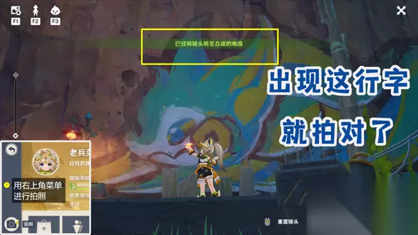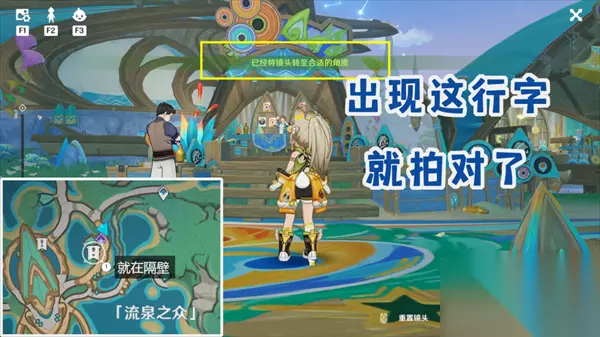 三个部落的主目标跟着任务指引就行。下面是额外目标位置。 拍摄时使用左上角菜单相机按钮拍摄,如果地点对,拍照时会有行字提示。 ①「流泉之众」额外留影地点有两个,第一个是主目标隔壁唱片店。