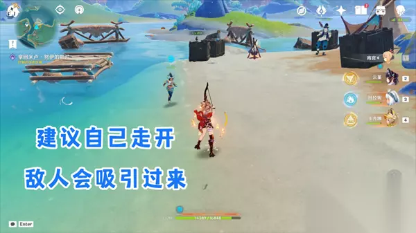 如下图,主动走远把敌人吸引开,一般就没事