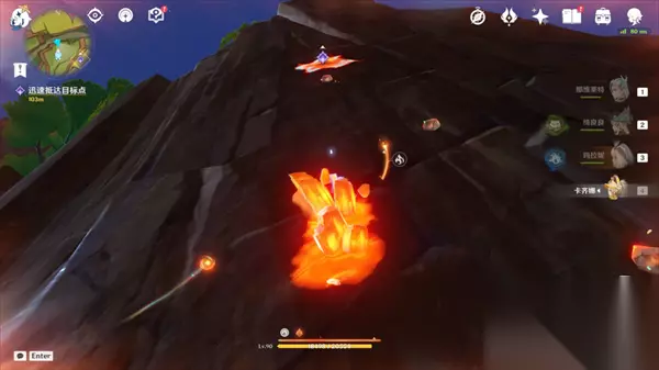 终点在旁边的黄色山上,从南边锚点飞过来就行,到这里放临时锚点即可。