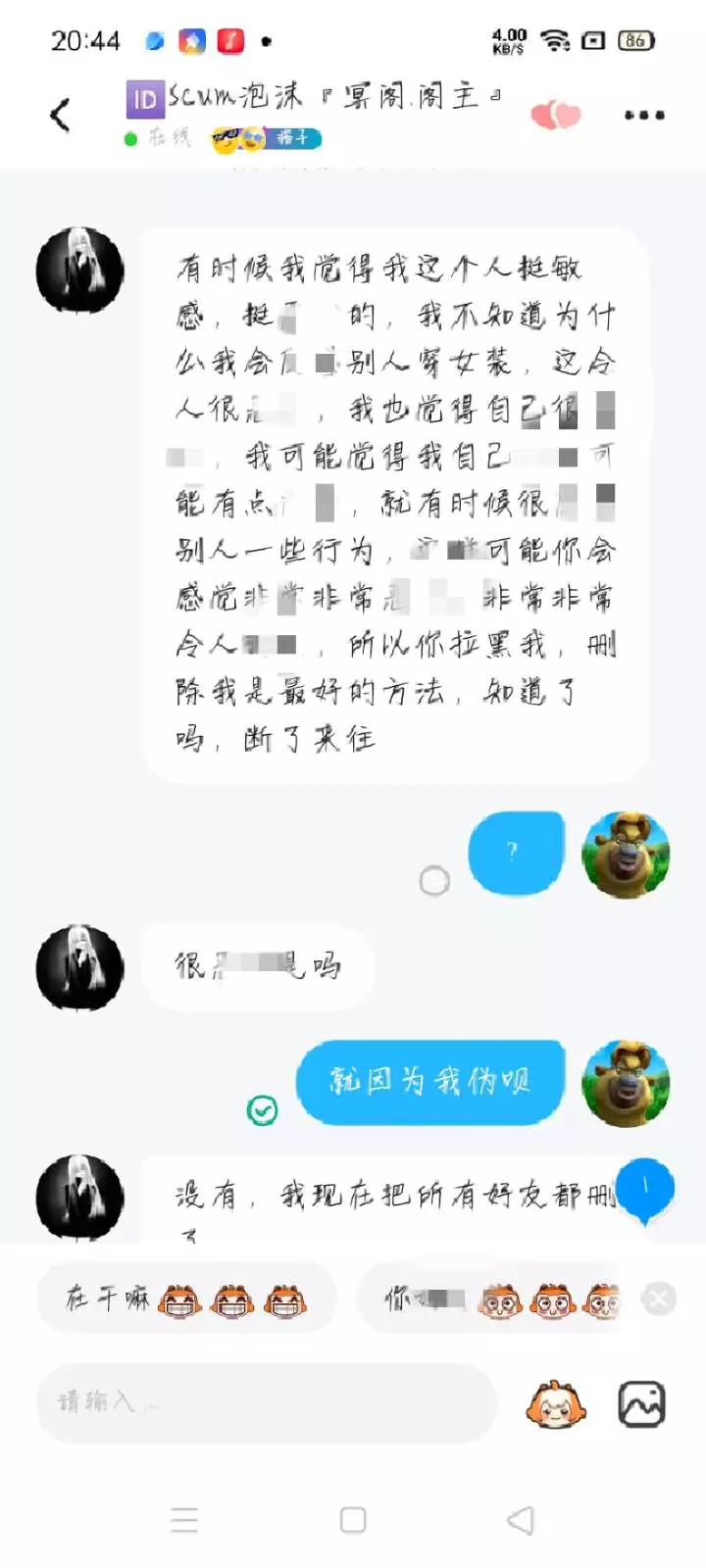 大概就是这样哈,咱也就是不多说啥了,冥阁解散,现在冥阁的叫仨: @徵祁『冥阁』 @信守『冥阁』 @ʚ呆呆ɞ·冥阁💤 ,有其他入的@出来,大概就是反感我穿女装呗