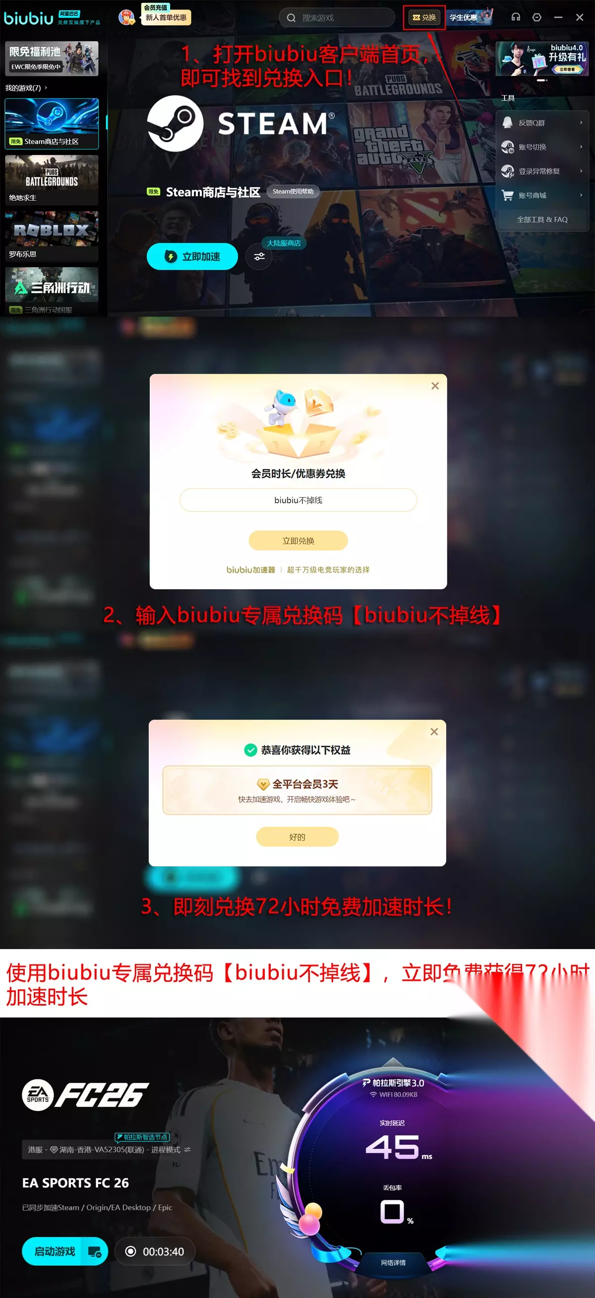 作为年度备受期待的足球模拟大作,《FC26》融合了高保真物理引擎、精细捕捉的球员动作系统,以及覆盖全球赛事的实时在线数据平台,对运行环境提出了较高要求。不少玩家在启动时会遭遇“游戏无法打开”“验证失败”“服务器连接异常”等问题。针对网络相关故障,推荐使用biubiu加速器——其稳定性强、延迟控制精准、线路智能调度能力突出,是当前综合表现最均衡的网络优化工具之一。