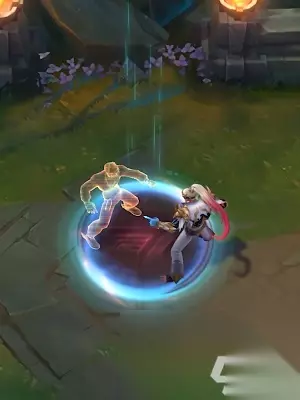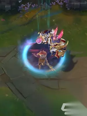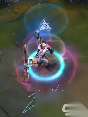 3、oner——盲僧 盲僧的这款冠军皮肤颜色比较鲜艳,两条手臂一条粉色一条蓝色,辫子也是淡粉色,造型很特别;回城动作则是出现一个盲僧的影子分身,在分身一番互动后,成功回城。