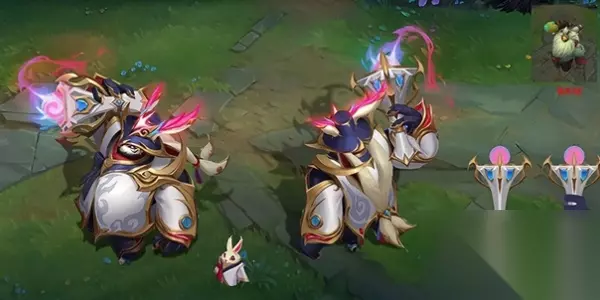 4、gumayusi——金克丝 金克丝的皮肤是此次冠军皮肤中网友好评最多的一款皮肤,皮肤基本上是以粉色系为主,只有武器这边点缀了一点蓝色,回城动作是Gumayusi的小狗出现,和金克丝一番互动玩耍之后,gumayusi的金克丝抱着小狗一起回城。