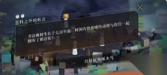 4、当初乔治橡树下听歌的动物? 答案:红松鼠和啄木鸟