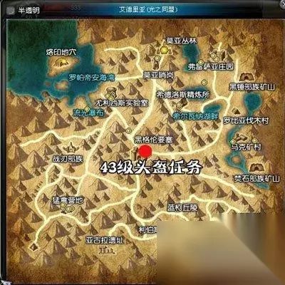 44级头盔任务: 可以在43级的时候接下任务,地点在第三张地图的中间城市。任务目标是收集30个绿色道具(HF中显示物品的名称是:巧飘 内绢,形状应该是绿色的树叶状),任务道具可以通过平时打怪的收集,怪物的等级在44左右的,都有一定几率掉落。在地图右边中间的“矮人洞”打矮人就有很多掉。 收集满30个以后,可以返回地图中间城市,在任务NPC处进行头盔选择(根据职业),战士和圣骑职业选择第一个、刺客和弓手职业选择第二个、法师和牧师选择第三个。