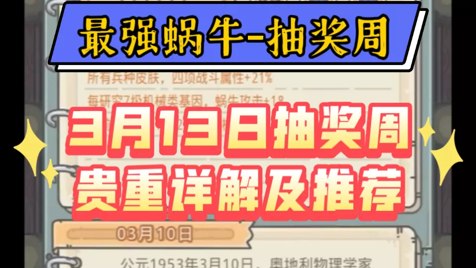这是《最强蜗牛》4月3日抽奖周的相关内容,对象纹大铜铙、薄伽梵往世书等多款贵重品进行详解,介绍了它们的属性、共鸣效果等信息,为玩家提供抽奖周的贵重品选择推荐。