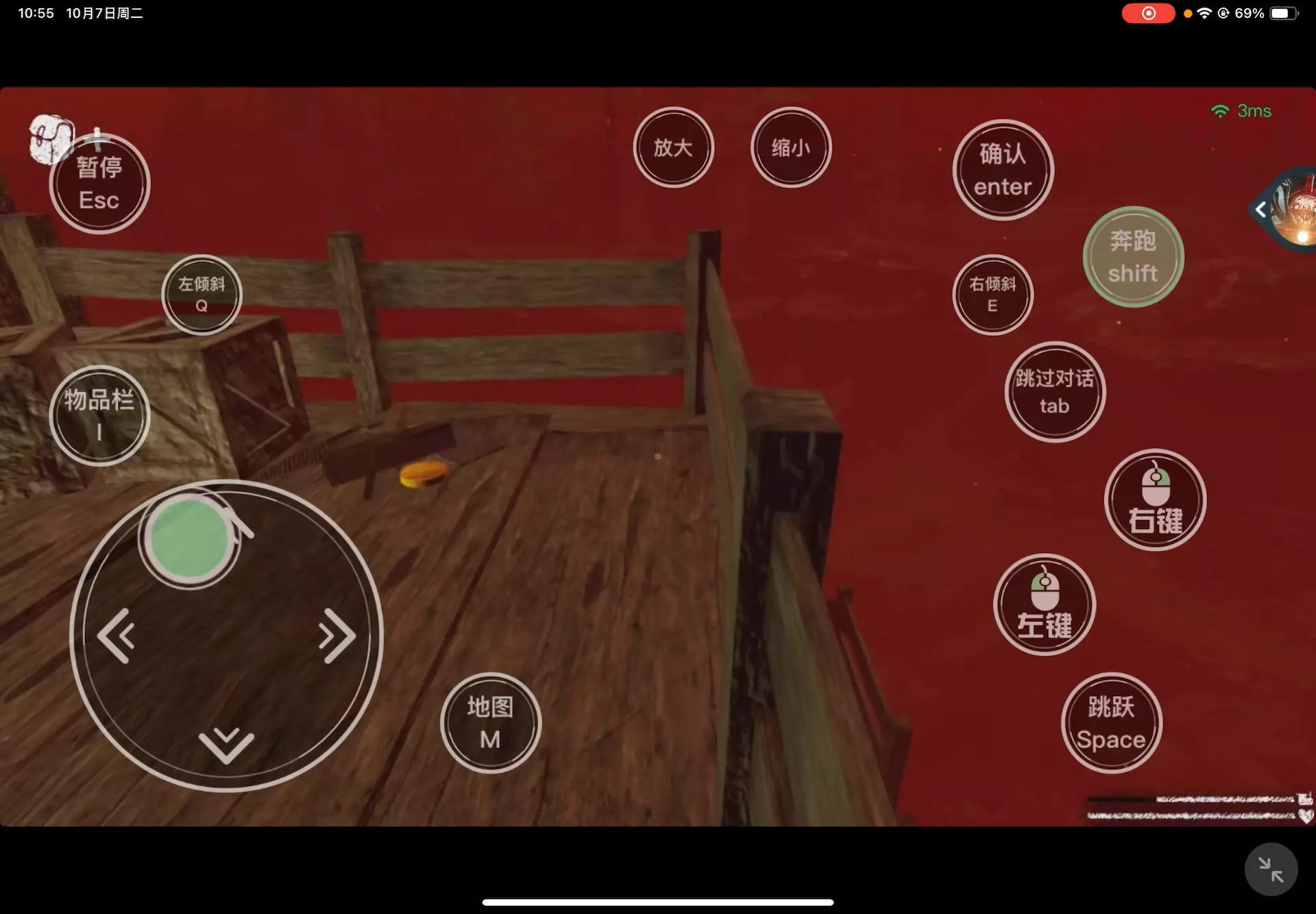 这是《查尔斯小火车》的游戏内容,展示了在炸弹桥关卡卡隐身bug做任务的操作画面,呈现了游戏内的操作按键与场景,能帮助玩家了解该关卡的bug玩法。