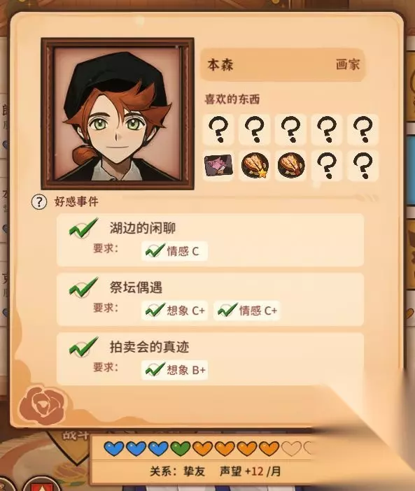 4、本森 全解锁需要想象达到B+,情感达到C+