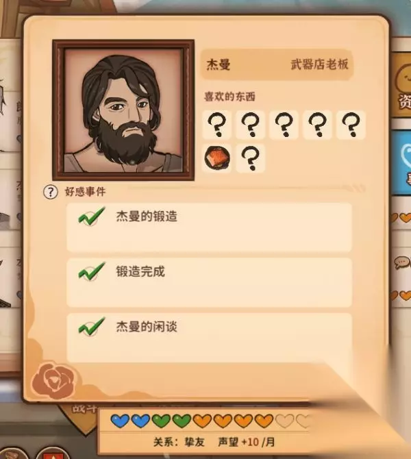 火山的女儿要想达成情感结局,除了攻略人物的好感度得满10心,140好感度以上,还得完成其好感事件,每个可攻略对象都有3个好感事件,关系达到挚友即可解锁事件,本篇为大家带来全角色好感事件要求合集。