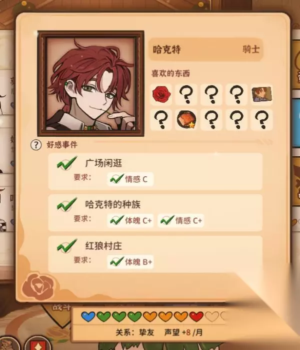 3、哈克特 全解锁需要体魄达到B+,情感达到C+