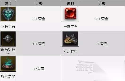 荣誉商人出售物品 荣誉商店 注:不朽者阵营的成员可以在荣誉商店中购买额外物品。