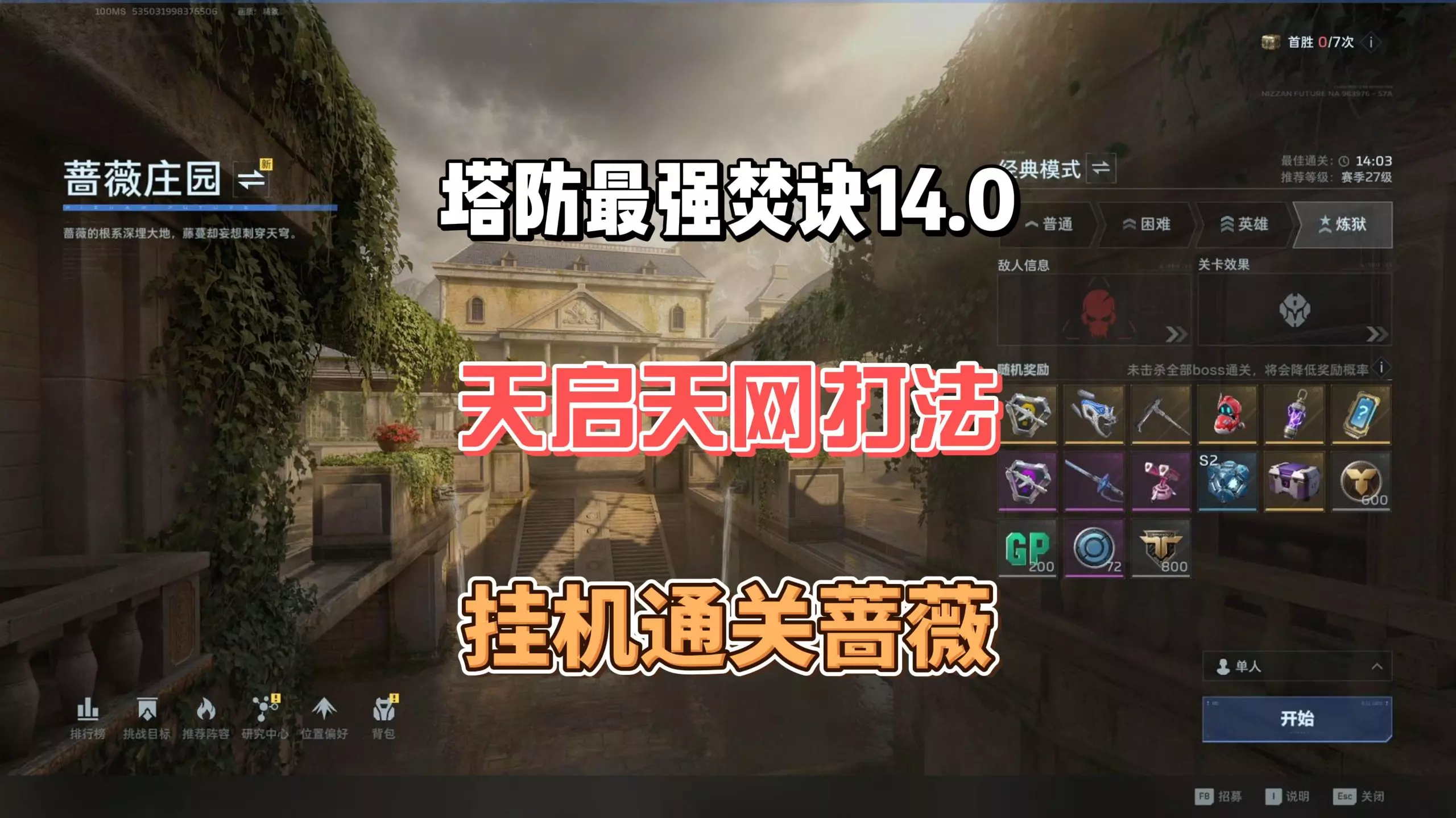这是《逆战未来》S2赛季蔷薇庄园的单人炼狱4级歼灭攻略,展示了13分钟通关的打法,全程上帝视角一枪不开,中途不补陷阱,呈现了陷阱布置等通关细节。