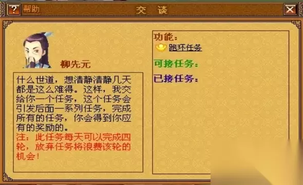 大于四十级的玩家可以在天庸城的杨镖头处领取60环的任务,是帮助杨镖头做事。 完成六十环的任务,有机会获得经验,金币,药品以及宝石等奖励。