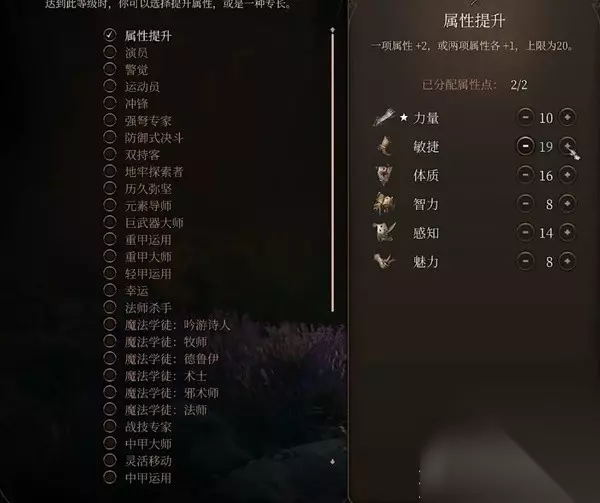 等级到达6级后我们选择增加职业战士,并选择防御作为战斗风格。 7级后我们将战士升到等级2选择冠军勇士为战士的子职业。 9级选择属性提升专长并将敏捷点到19点,选择强弩大师也是不错的选择,看大家的喜好吧。