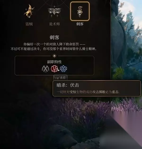 10级选择游荡者作为我们的第三个职业,获得先攻能力对后面遇到的战斗能获得优势。 在角色到达12级后,将游荡者升为3级,选择刺客作为子职业,盗贼可以获得偷袭的加成伤害也是不错的选择。