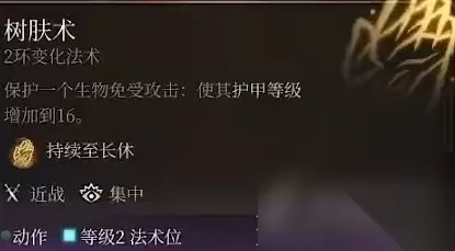 5级法术选择树肤术。