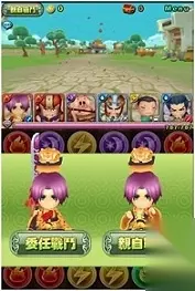 二、委任亲自双选择 一指走天下?不不不!《吞食天地touch》告别传统,「委任」或者「亲自」双向选择,不管是忙碌还是休闲,只要轻轻一点就可轻松搞定。 亲自战斗完全依靠玩家的转珠技巧,靠着连击来提升攻击和补血量,若是委任战斗,则是看最下面一排的六个珠子颜色来判断连击与否!委任战斗还可以选择速度,速度随着角色等级提升而慢慢开放,最高可以开到「速度 X3」,其实队伍谨慎选择,使用委任战斗对于忙碌的朋友们简直是一大福音呢,当然,在委任的时候也可以随时按下左上方的「亲自战斗」按钮做切换,一有空就可以好好的虐待敌人,这设定是不是很贴心。