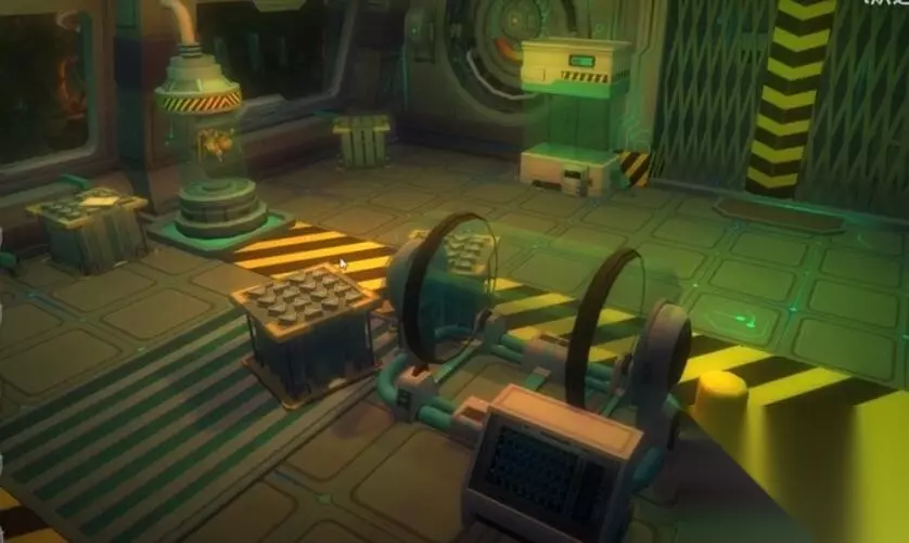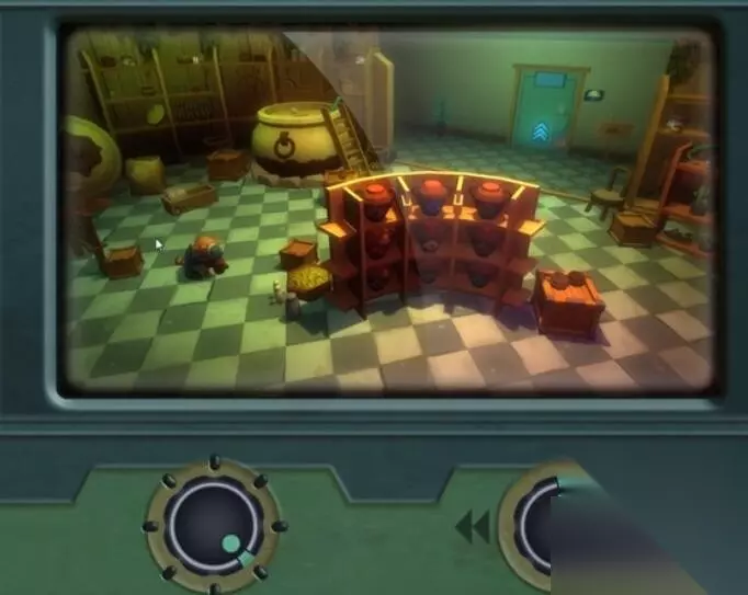 3、在蔬菜处拿到一个旋钮,去到监控室里把旋钮安装于设备上,就能见到每间房的现象。