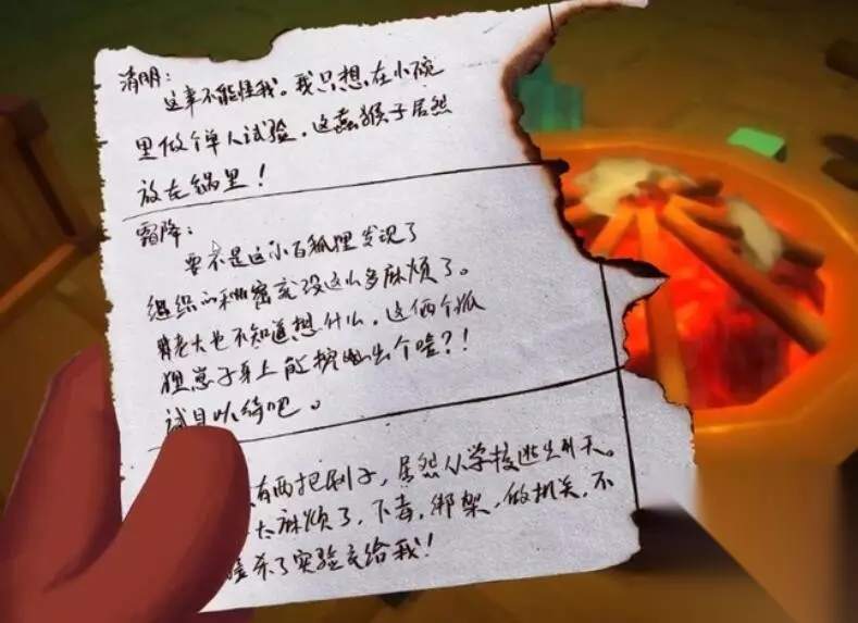《匿名信隐匿者》全关卡通关攻略 第一关通关攻略 1、进入游戏就来到中华楼,上来就是一个移动游戏,需要点耐心,结束后拿到一个残片,又是一个拼图游戏,这儿都要一些细心。 2、最后我们依据奶羊的手势,先后点击浮于上空的灯,拿到储物间锁匙 以前的拼图游戏便是地图,点击右侧的按键就可以去其他屋子,储物间钥匙解锁储物间。 3、进到储物间后我们观查桌子上的餐具方位得到线索,查询餐具线索得到目标和总数4324 大家可以调节左侧设备按键方向,结束后抽出全部木筷,拿到图普线索 之后在右侧的架子上大家完了拼图盒子,拿到了棋子1。 4、返回大厅,在椅子和凳子上拿到两颗棋子,依照图普的模样,将三枚棋子在旗盘上排序下去。 5、进行旗盘以后,赶到前台进行游戏,拿到蒜头,再为到奶羊先生,上楼,要进入厨房首先点击酒坛子,酒坛颜色对应里边厨房的门密码。