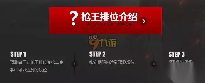 枪王排位活动怎么玩 STEP1.预测自己在枪王排位赛第二赛季中可以达到的段位 STEP2.指定期限内达到预测段位 STEP3.领取对应奖励 活动网址介绍 CF我的枪王之路活动 一、预测段位