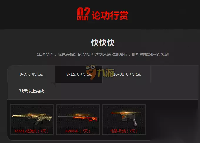 快快快——活动期间,玩家在指定的期限内达到系统预测段位,即可领取对应的奖励