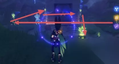3、观察草元素方碑下的发光符号,这些发光符号是我们点亮方碑的顺序。