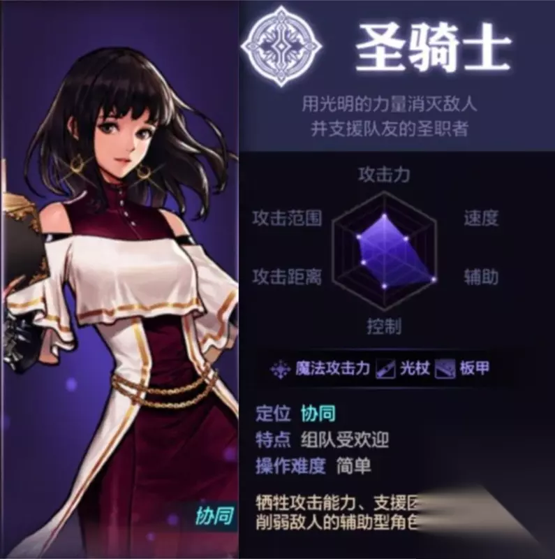 二、背景故事 欧贝斯·罗什巴赫以其优秀的能力领导着这支由女性组成的圣职者军团。她们用蕴含神性的声音和圣光的力量保护着战友和无辜的人们。 三、角色六维图