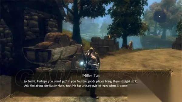 4.任务继续: 返回中间木屋附近,与MILLER对话,得知有一批货物被兽人劫持,指引玩家前往指定地点寻找货物。