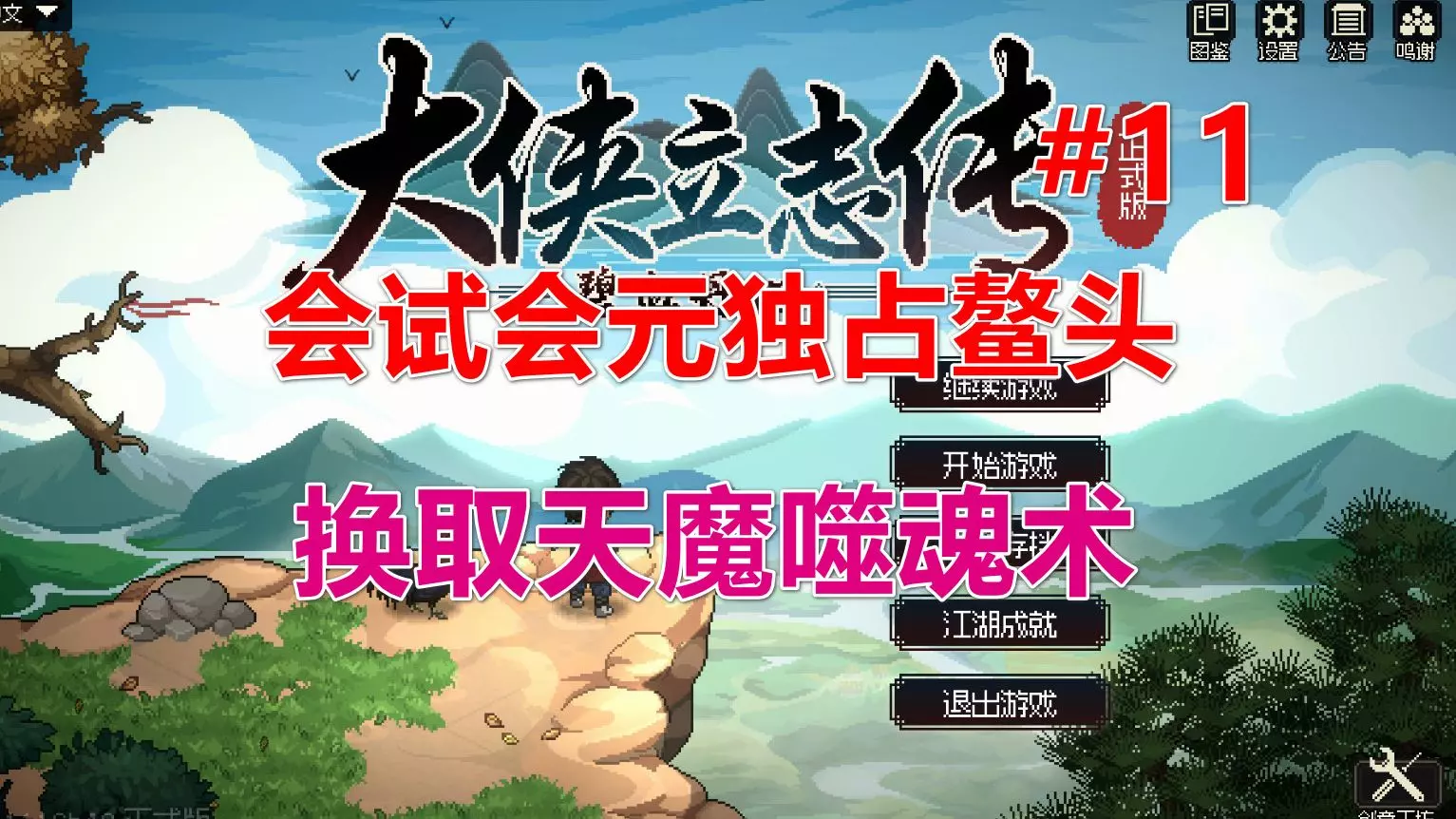 这是武侠游戏《大侠立志传》一周目困难模式的内容,展示了顶峰论道玩法,还分享了蔡元常逃课玩法,呈现了顶峰论道的战斗场景以及蔡元常的角色属性等内容。