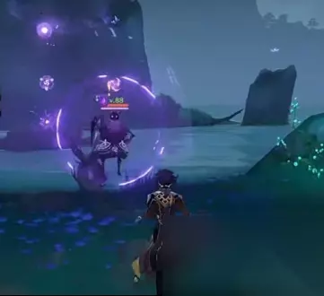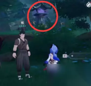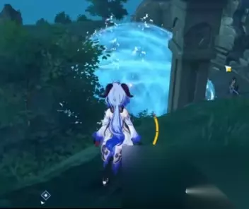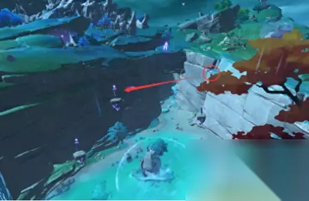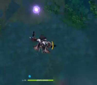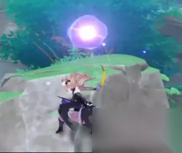 这里注意,这个雷法师是要打的,你打完之后,就可以靠这个雷种子来穿过屏障。但是,这个珠子是悬浮在半空中的。如果,你没有温迪、万叶、钟离+阿贝多这样的组合来制造一个可以升上去那珠子的角色,你就爬上边上的山坡,从山坡上飞进这个屏障里。(期间记得留意雷种子是不是还留在身上,毕竟有时间限制。) 你拿了珠子之后,会跳出三个深渊法师,你如果不想打,直接走掉就可以了。(你如果很记仇,那就抽死它们。) 然后,我们来到魔偶剑鬼边上的传送点。直接从传送点往魔偶剑鬼的方向飞,越过魔偶剑鬼,去找一个雷极。