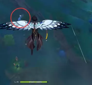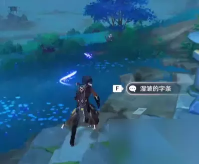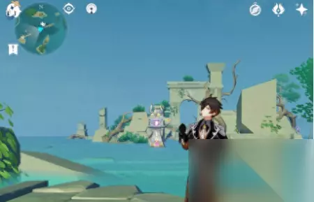 飞下去的时候小心一点,因为它悬浮在空中,如果你没有在空中摸到它就得再来一次,就很麻烦。(亲测,温迪站在钟离的柱子上飞,可以从地面摸到它。) 然后,落到地上,地上有一个武士,不用管他,石头在这个武士的身边。