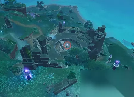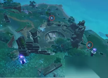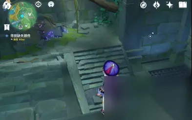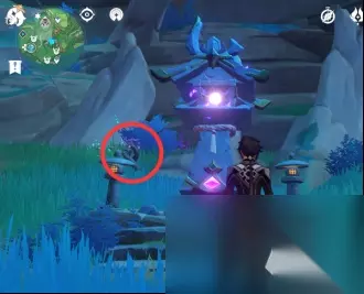 找到这个鸣神磐柱之后,还是要给里面装上一个石头和一个珠子,这两个东西都丢了,所以你现在要打开元素视野,开始在周围寻找这个石头和珠子。