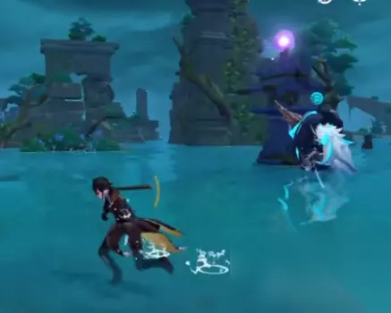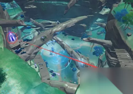 你带着雷种子进入屏障之后,就会发现一个开门的机关。启动这个机关之后,那条满是雷元素的河就会消失。