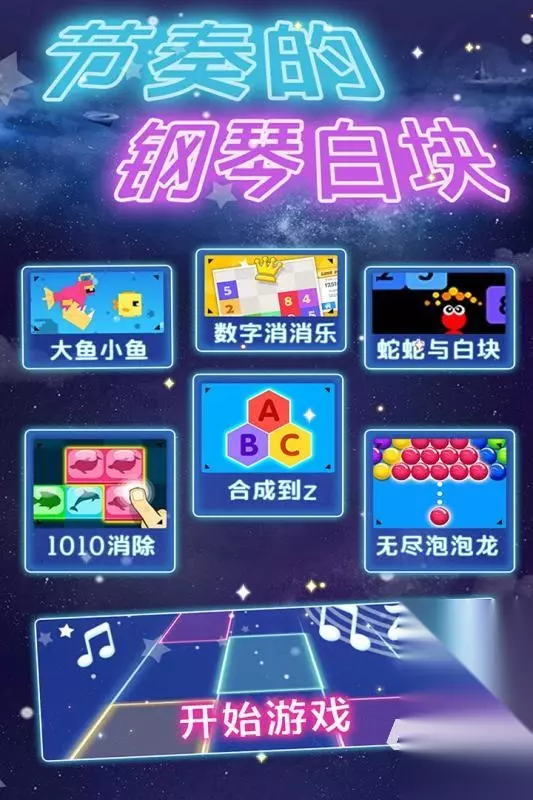 玩家会置身于充满像素方块构建的场景,遇到各种动物和障碍。玩家要根据动物的外形特性,利用石头、剪刀、布三种手势来进行捕捉或应对。比如,可用石头手势围困动物,用剪刀手势切掉障碍。如果遇到克制自己手势的动物,则需要赶紧逃走。游戏还设有上百个关卡,通过排名模式来决定玩家最终获得的资源。 手机扫码下载233乐园APP预约 预约订阅最新动态 优先233乐园APP下载 6、《节奏的钢琴白块》