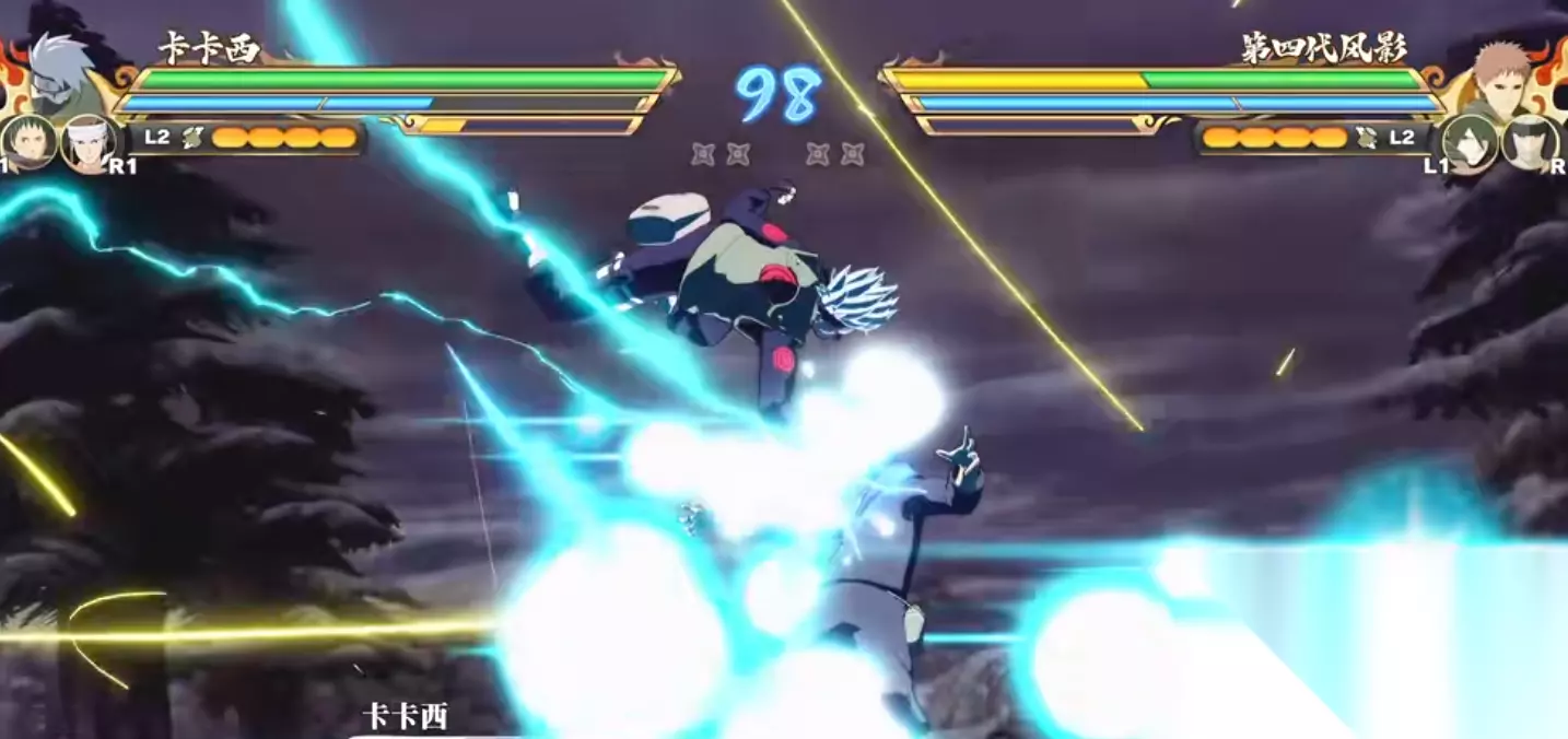 卡卡西的第一段普攻向前挥砍,2A反手一刀再接一脚,3A向前跳劈,这三段攻击就是卡卡西所有的前置平A 。没有命中敌人时,中下段攻击可以打到第5A,上段攻击可以打满。中段攻击第4A向前踢一脚再砍一刀,第4A的第二段伤害可以打出敌人的倒地,是咱们的稳定衔接点。第5A向前连踢两脚,第6A进特写将敌方击飞。下段的第四段攻击对敌方扫腿,第五段的普攻是空中转身连砍两下,第6A短刀突刺随后进行特写使敌方跪地,同样可以接后续的攻击。