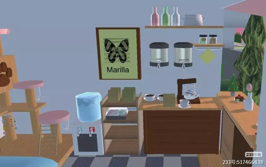 内部:🐱猫爬架,制作咖啡🥯的迷你厨房 猫抓抱枕and沙发,饮水机🍶