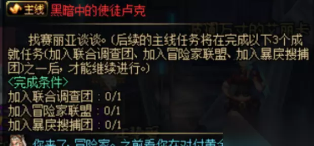 3.接下来就只需要加入成就任务中的任意一个冒险团之后,点击完成任务。当获得称号奖励,你就会发现主线任务黑暗中的使徒卢克任务已经完成。