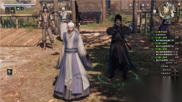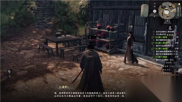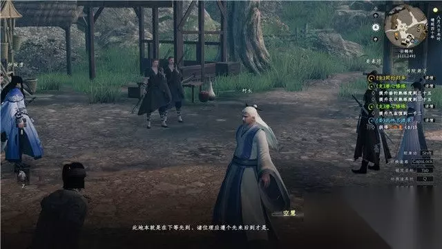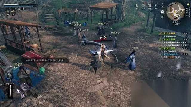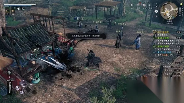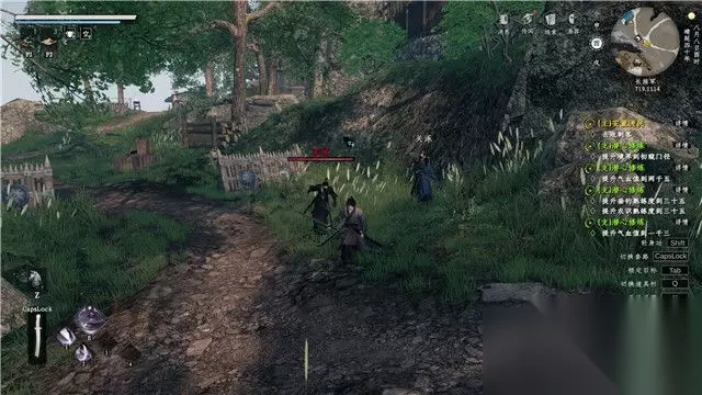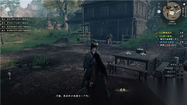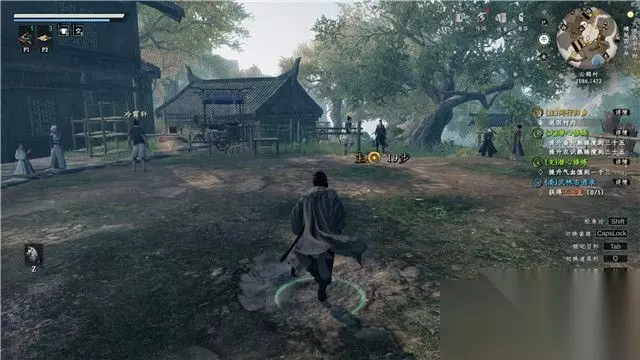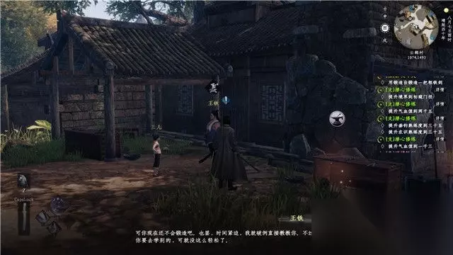 跟随教程学会轻功,之后前往敌人所在区域房屋后面。