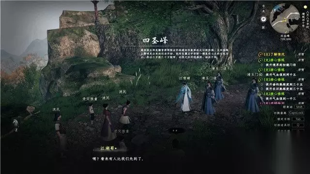 然后前往四圣峰,与这里的流民交流。 剧情升级后,就开启下一条主线。