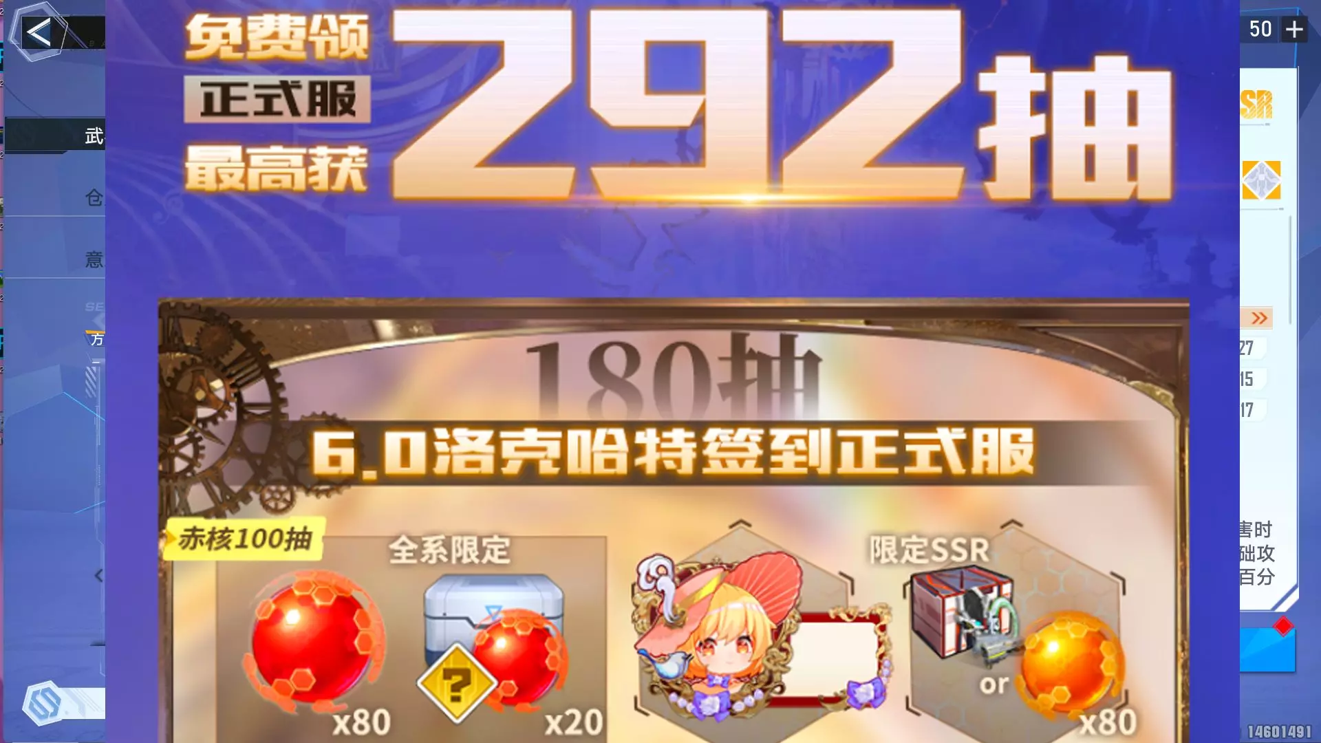 幻塔6.0直接送292抽!签到就送100抽赤核等于送新限定