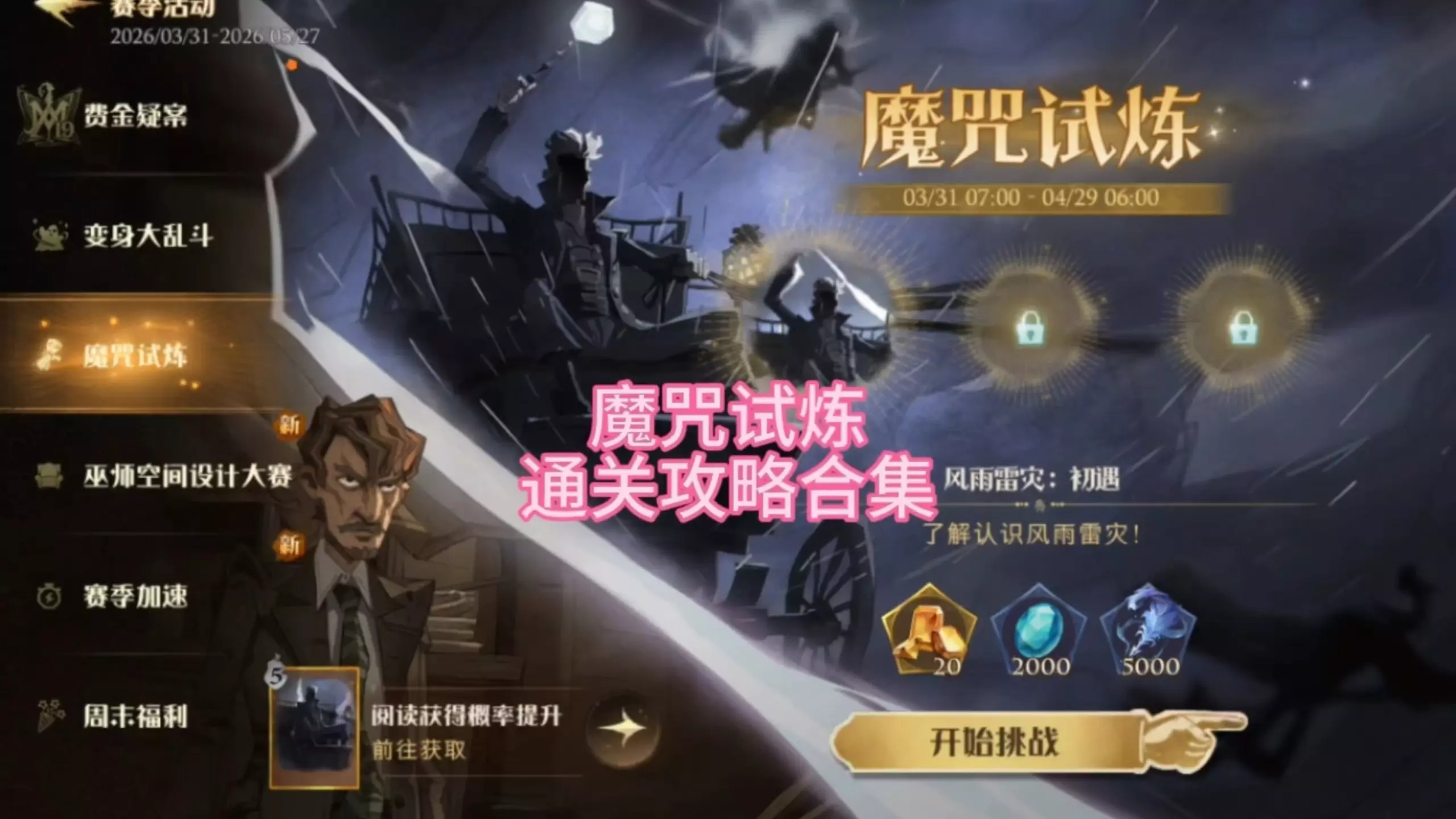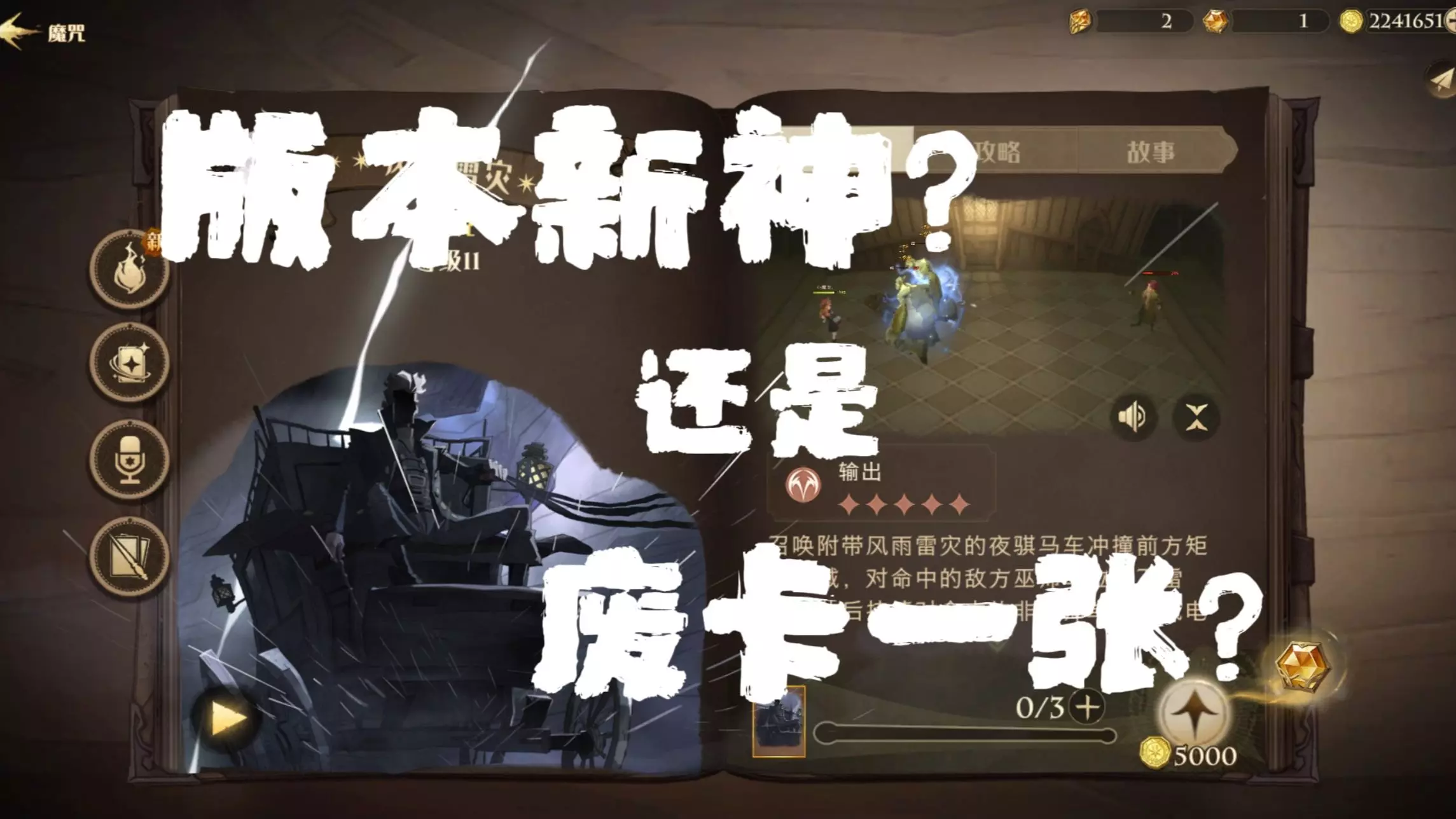 这是《哈利波特魔法觉醒》的游戏实况,展示了新卡牌风雨雷灾的试炼玩法,该卡牌可对任意矩形范围内敌人造成高额伤害,玩家表示这个试炼比往期简单。