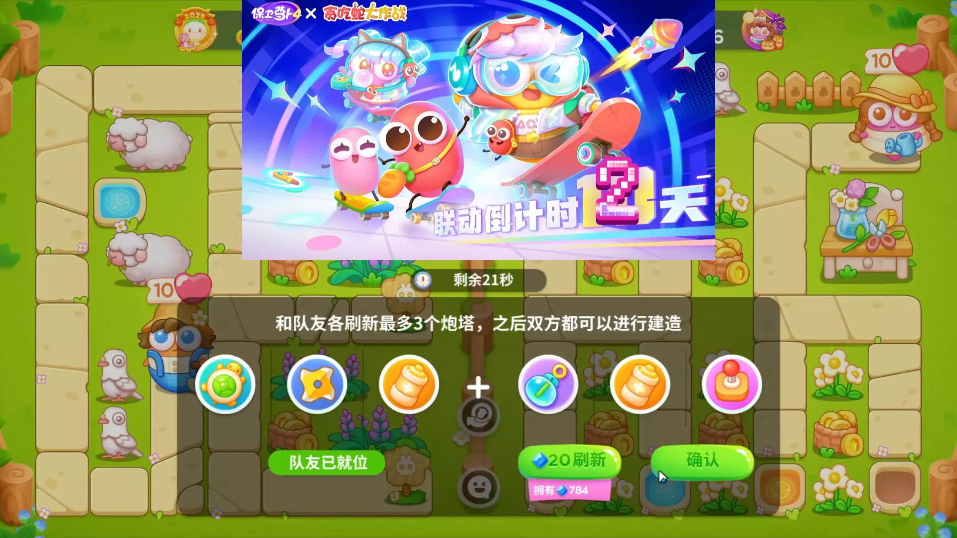 保卫萝卜4即将于12月25日开启和贪吃蛇大作战的联动活动,目前联动倒计时还剩一天,图中展示了保卫萝卜4的对局过程,发帖者对正负电塔的炮塔组合不满意。