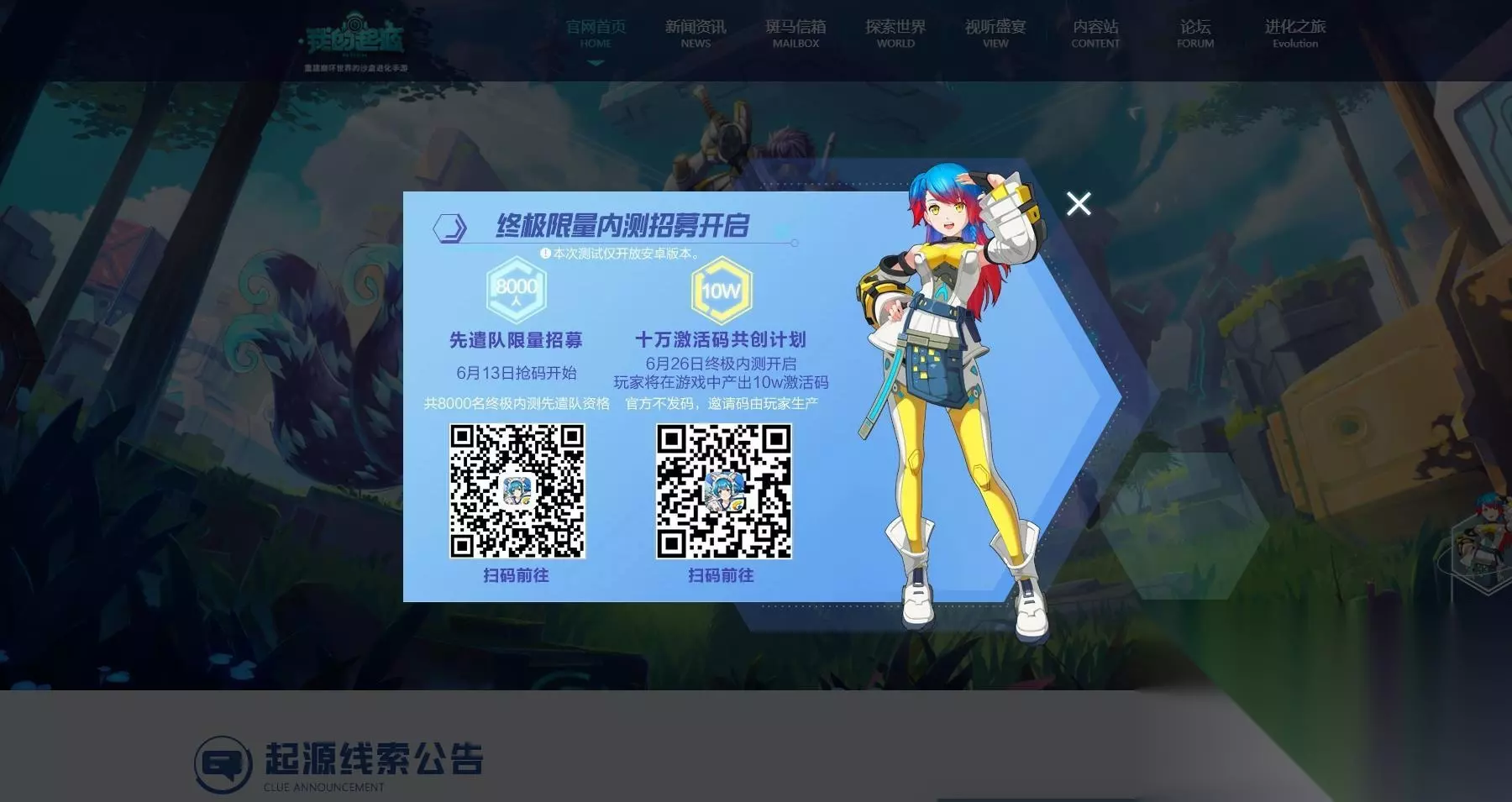 以上内容就是关于我的起源这款游戏的内测激活码获取了,赶快去抱大腿吧,祝各位玩家早日拿到属于自己的激活码,愉快游戏吧。