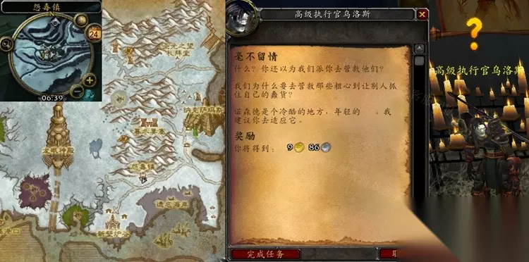 魔兽世界怀旧服WLK毫不留情任务怎么做呢?这个毫不留情任务是一个比较简单的任务,很多小伙伴都还不清楚这个毫不留情任务具体的做法,现在233乐园游戏小编就专门分享给大家相关攻略,大家看完就知道了。 魔兽世界怀旧服WLK毫不留情任务怎么做 不知道在哪接的玩家去房间里有个2楼,在楼上的,我也是晕了很久 接取等级:71 接取NPC:间谍女王瑞贝娅(龙骨荒野,怨毒镇) 完成NPC:高级执行官乌洛斯(龙骨荒野,怨毒镇) 奖励声望:250点复仇之手 任务开始: