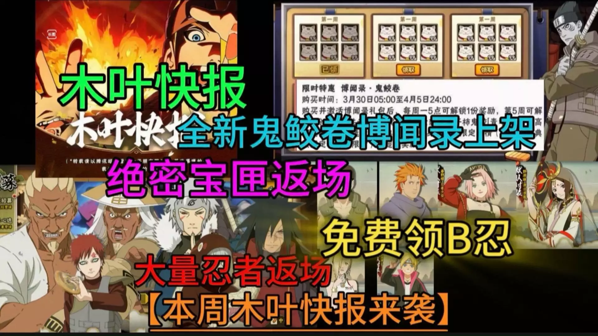 火影忍者手游推出博闻录·鬼鲛卷活动,购买时间为3月30日至4月5日,激活后可解锁干柿鬼鲛[青年]碎片等奖励,同时还有忍者少女系列装扮上新。作者认为这是魔方新圈钱模式,不建议月卡党参与。