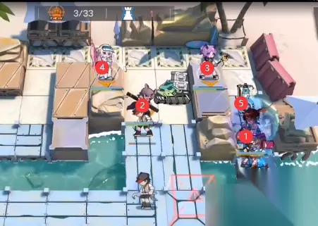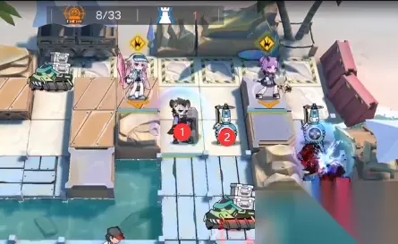 二、打法流程 开局如下图所示布置干员: 棘刺(向左)→ 先锋 → 单奶(3号位向下/4号位向右) → 装置1