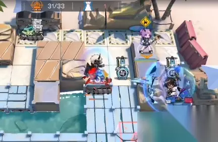 然后在第一次涨潮前,先锋换重装,并给他也贴一个装置。