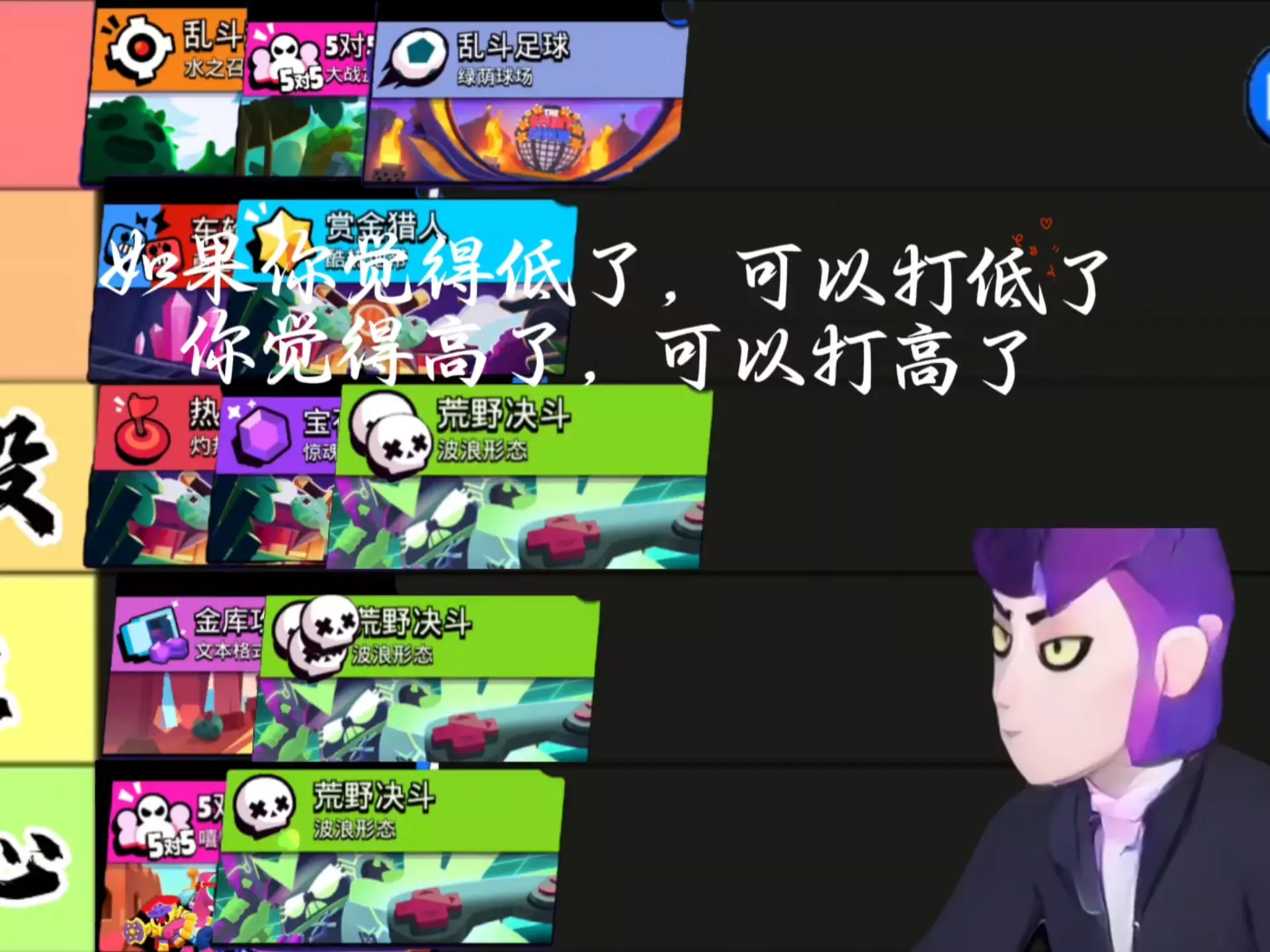 这是对《荒野乱斗》各段位现状的锐评,青铜段位基本是人机局,黄金段位开始出现大量真人,钻石段位对局情况混乱,神话段位开始出现真正的bp,展现了不同段位的对局特点。